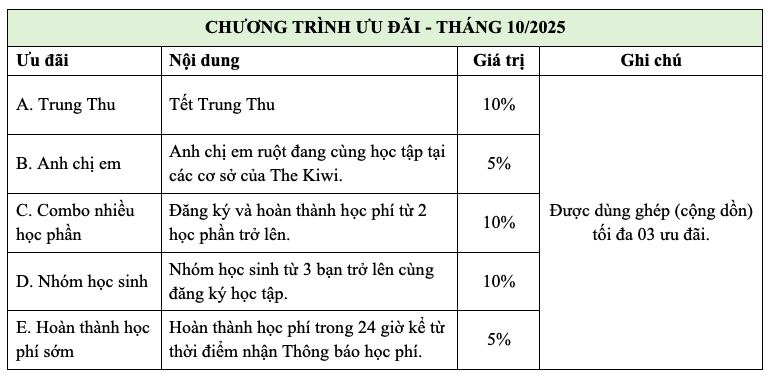 Thông tin lưu ý về chính sách ưu đãi học phí tháng 10/2025